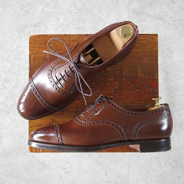 COVENTRYはドレス木型の341ラストを使用したセミブローグ、モデルとしてもクロケット&ジョーンズの中では比較的知名度がある方かと思います。特にこれといった癖もなく、余程かっちりした会社でなければビジネスで十分に使えるデザインですので、ドレス~ビジネス目的の方向けにはお勧めしやすい優秀なモデルです。