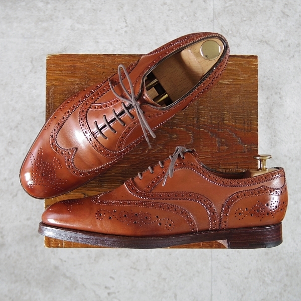 エドワードグリーンのFALKIRKは、全面にメダリオンの配された珍しいデザインのモデル。現行品ではやっていないので、モデルとして一般的な認知はほぼありませんが、全面メダリオンとインパクトある見た目ですので、今でもコアな高級靴ファンの間ではちょくちょく話題に上がるモデルです。